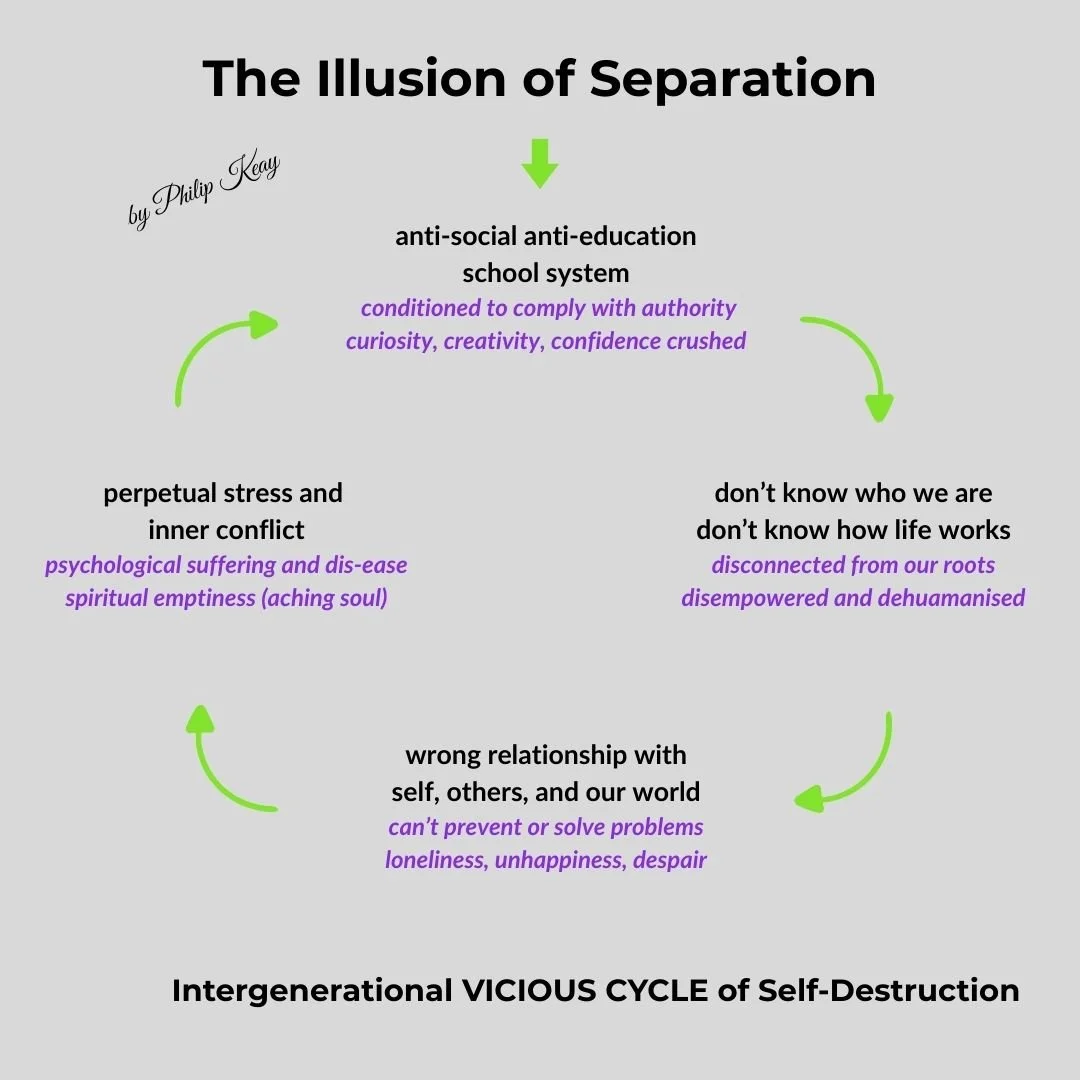 Society, and its harmful education system, focuses only on matters of the external world. It teaches us nothing about the inner world of our mind, body and soul, depriving us of our human essence and leaving us ignorant of our true nature. We become enslaved to the external world and its ‘experts’.